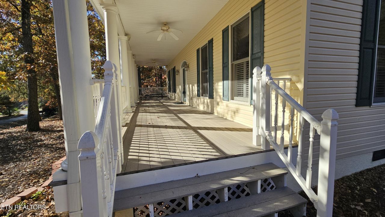A custom multi-level home in Tellico village featuring 3 bedrooms, a bonus room, 3 full baths, and 2 half baths. The primary bedroom is located on the main floor for convenient single-level living. Two guest bedrooms are positioned upstairs, each with its own private full bath. The bonus room is located over the garage and also includes a private bath. offering flexible space for guests, office use, or recreation. The main level includes a formal dining area, a kitchen with an eat-in space, and a sunroom/recreation room overlooking the wooded backyard. A fully covered front porch provides additional outdoor living space and room for seating. The home also features a two-car garage for enclosed parking and storage. Located near Tellico Village amenities including lake access, golf, recreation centers, and walking paths. Schedule a visit to view this beautiful home and its layout and setting.