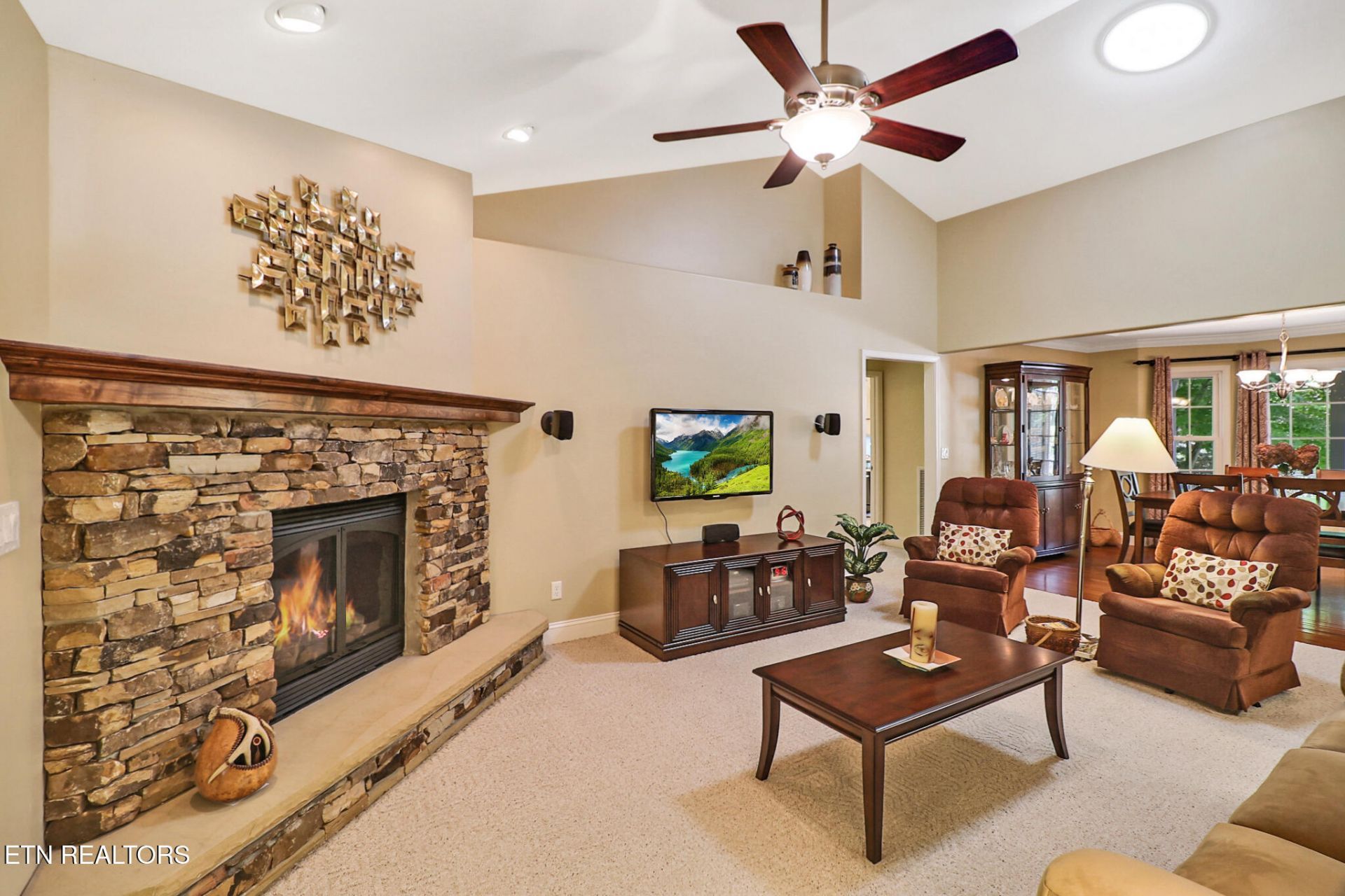 Welcome to this beautifully maintained, one owner, move-in-ready home nestled on a quiet, traffic-free street with a peaceful wooded backdrop in Fairfield Glade.This single-level, split-bedroom floor plan offers comfortable living space, with an ideal split-bedroom layout. Thoughtfully designed and lightly lived in, the home has been meticulously cared for and offers both functionality and style. Step inside to find vaulted ceilings and an open-concept living area anchored by a stunning stone fireplace, creating a warm and inviting gathering space. The kitchen is a standout, featuring custom alder cabinetry, granite countertops, stainless steel appliances, a center island, and generous storage including a walk-in pantry--perfect for both everyday living and entertaining. The kitchen has easy access to both the dining area and a bright breakfast nook that opens into the family room, all overlooking the private, wooded backyard.Retreat to the private primary suite with tray ceilings and an en-suite bath offering a large walk-in shower. Two additional bedrooms and ample storage throughout the home provide flexibility for guests, hobbies, or office space.Enjoy outdoor living from the covered front porch or relax on the back deck overlooking a serene, wooded yard, offering both privacy and natural beauty.Additional highlights include: Low-maintenance brick and vinyl exterior Energy-efficient features including extra insulation (R-50+), Energy Star appliances, and natural gas heat New HVAC system (2018) and new refrigerator (2025) Spacious laundry room with cabinetry and utility sink Oversized garage with built-in workbench and storage Abundant storage throughout, including attic and under-house areas Designed with convenience in mind, this home also features wide doorways, lever-style hardware, and a single-level layout, making it ideal for a variety of lifestyles. From the beautifully landscaped yard to the thoughtfully designed interior, this home offers the perfect blend of comfort, efficiency, and tranquility. Detailed information and features of this home are in the MLS documents.